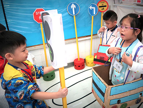 We are convinced that teaching languages used in a social context or applied in real situations can help enhancing children's reading, writing and listening skills. Hence, teachers always act as storytellers and further require children to role-play and perform discussions.